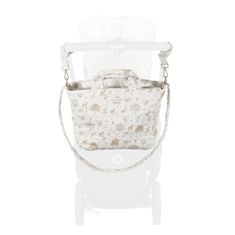 - Incluye asas adicionales universales para colgarla al cochecito y asas dobles: una larga para hombro y asas cortas de mano.