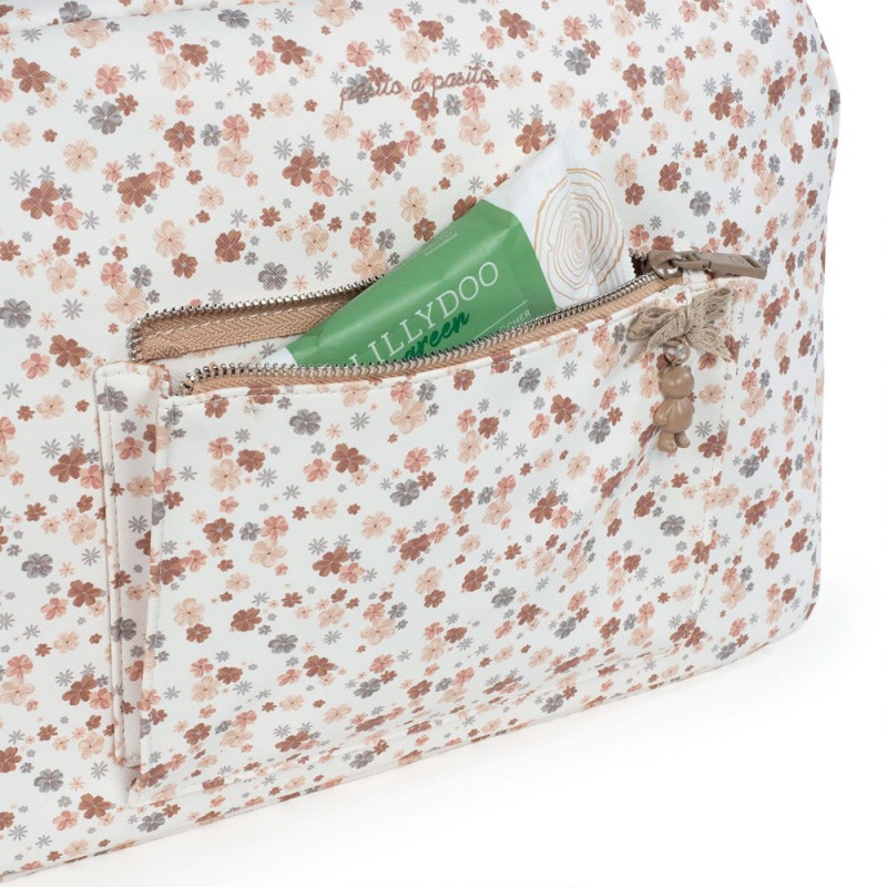 La Bolsa Canastilla Pasito a Pasito Somerset es la compañera ideal para familias que buscan organización, capacidad y un estilo elegante en cada salida con su bebé. Gracias a su diseño en polipiel estampada de flores, resulta tan bonita como práctica, por lo que puedes usarla como bolso para el carrito, para la silla de paseo e incluso como bolsa para el hospital si estás preparando la llegada del bebé. Además, su interior está pensado para el día a día: incluye forro, múltiples bolsillos para mantener todo ordenado y un cambiador, algo especialmente útil cuando necesitas resolver cualquier imprevisto fuera de casa.