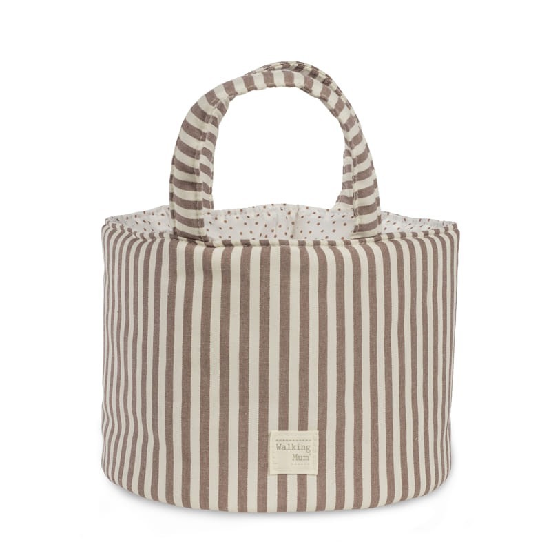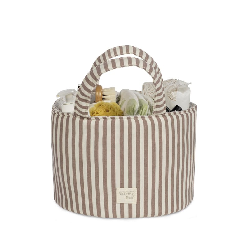 La cesta organizadora Walking Mum Praliné Raya es ese pequeño gran aliado que ayuda a mantener el dormitorio del bebé ordenado sin renunciar a un estilo delicado y actual. Su estampado de rayas aporta un toque fresco, natural y atemporal, perfecto para crear un ambiente cálido y armonioso. Además, está pensada para que el día a día sea más fácil: tener a mano pañales, cremitas, muselinas o pequeños accesorios marca la diferencia, sobre todo en los momentos de cambio o antes de salir de casa. Por eso, esta cesta combina estética y funcionalidad, y encaja con naturalidad en el cambiador, la cómoda o una estantería.