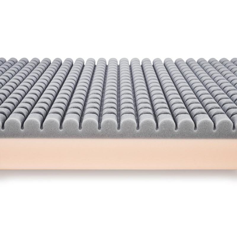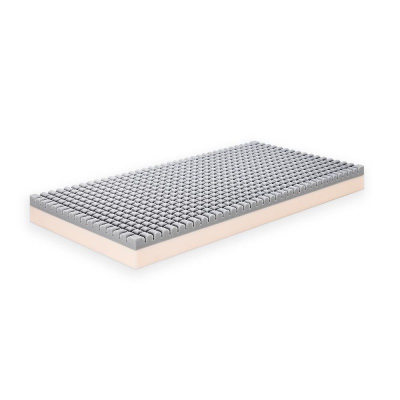 Estructura: sistema bipieza (base + topper) con canales de ventilación.