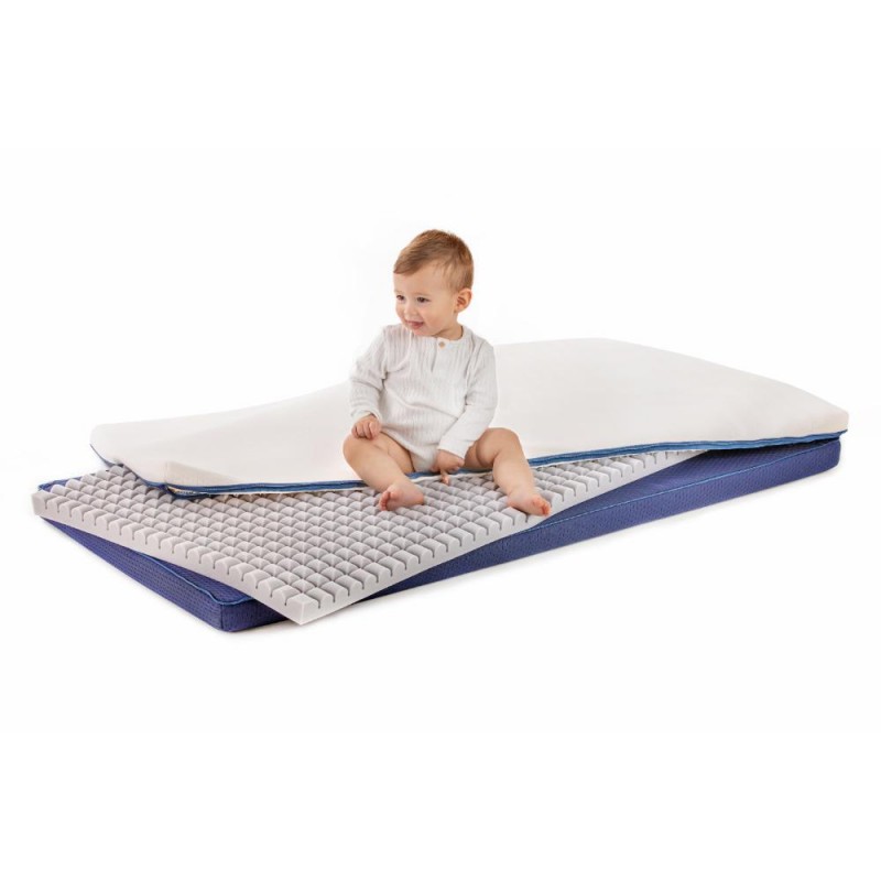 El topper está planteado como un elemento multifunción: puede usarse por separado como colchón de viaje (incluye bolsa de transporte) o para co-sleeping/colecho sobre la cama de los padres, lo que suma flexibilidad en casa y fuera de ella. Además, el diseño desenfundable 360º con cremallera perimetral permite separar base y topper para facilitar la limpieza y el mantenimiento. También destaca el enfoque en la seguridad durante el descanso, al contemplar ventilación para ayudar a evitar acumulación de calor y facilitar la renovación del aire. Finalmente, el producto cuenta con referencias a certificados y sellos como OEKO-TEX® Standard 100 Clase I y Certipur®, además de tratamiento Sanitized® en textiles hipoalergénicos, lo que resulta relevante para familias que priorizan materiales controlados.
