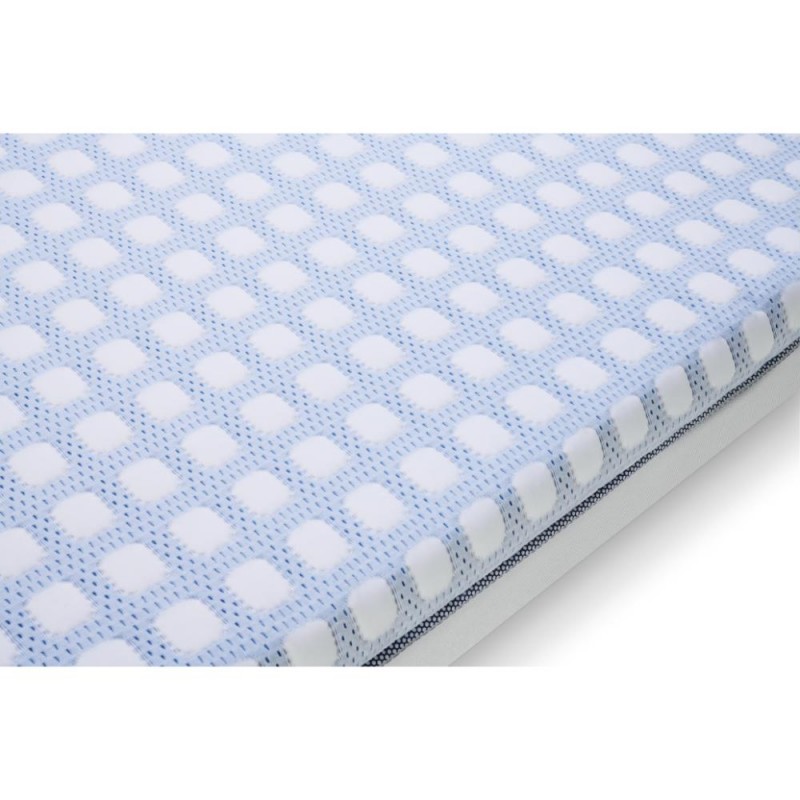 Este colchón destaca por su tecnología superior orientada a la seguridad y al confort térmico. Incorpora canales de aireación en espuma reticulada de poro muy abierto en el topper, creando amplios espacios internos que favorecen la circulación de oxígeno y facilitan la evacuación de CO₂. Además, incluye una funda con tecnología XtraCool para mantener una sensación más fresca durante más tiempo. Por otro lado, el topper hidrófugo ayuda a que la humedad no se retenga en la superficie, contribuyendo a mantener el entorno más seco.