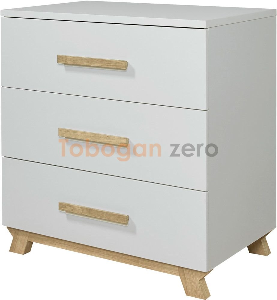 Fabricada con materiales de alta calidad, como MDF robusto , la cómoda Veneto destaca por su acabado en blanco combinado con detalles en madera natural , como sus tiradores y patas, que aportan calidez y un toque moderno a cualquier habitación infantil. Sus tres amplios cajones ofrecen espacio suficiente para guardar ropa, pañales, toallas y otros accesorios esenciales del bebé.