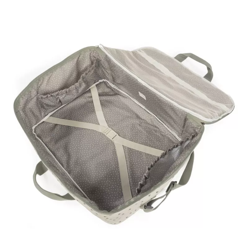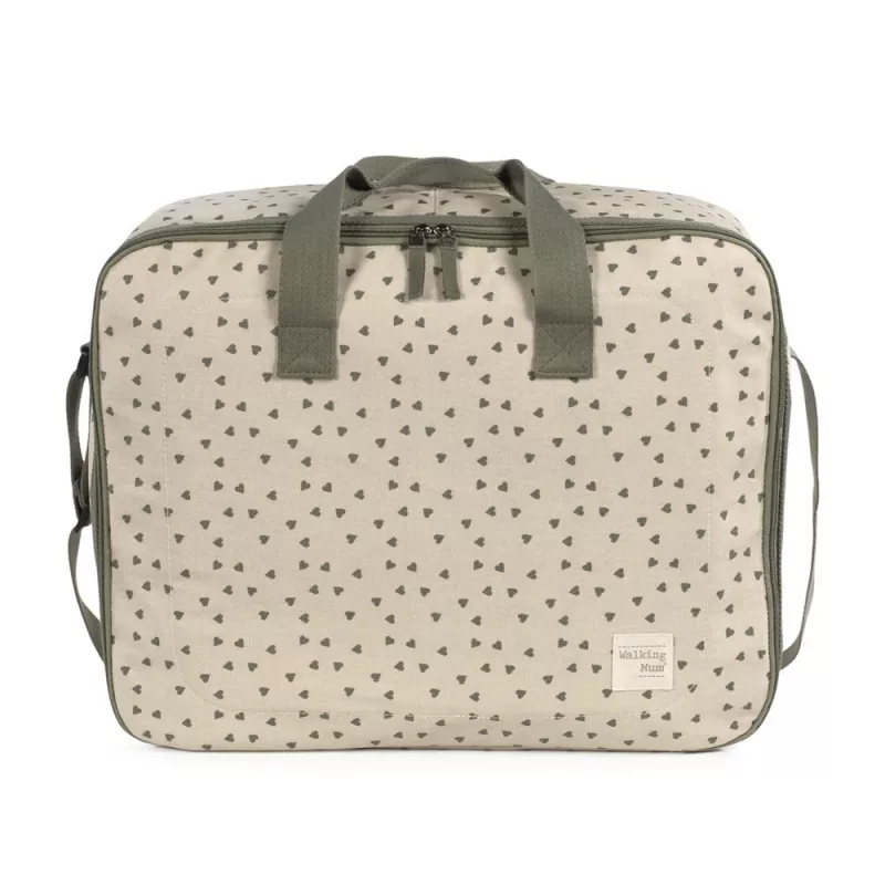 La maleta Walking Mum Poppy Corazones es una opción práctica y con estilo para preparar con tranquilidad el día de la llegada del bebé. En ese momento tan especial, es habitual necesitar un espacio amplio y bien organizado para llevar ropa, accesorios y todo lo imprescindible para la mamá, el papá y el recién nacido. Por eso, esta maleta de maternidad está pensada para acompañarte con comodidad: es ligera, manejable y cuenta con una apertura práctica que facilita ver y acceder al contenido sin perder tiempo. Además, su cierre con cremallera en ambas direcciones ayuda a que todo quede bien protegido durante los desplazamientos. Su diseño combina un aire urbano y moderno, ideal para familias que quieren funcionalidad sin renunciar a un acabado bonito y actual en sus paseos y estancias en el hospital.