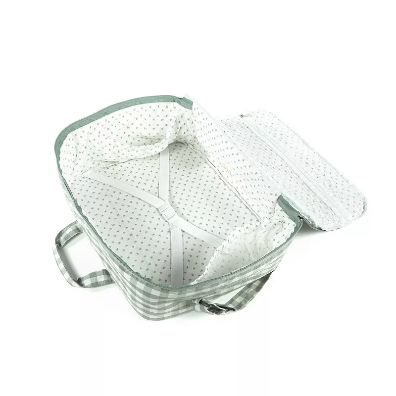 En el interior cuenta con un forro a juego y gomas de sujeción que ayudan a contener la ropa y a mantenerlo todo en su sitio, algo especialmente útil cuando preparas conjuntos completos por días o guardas prendas delicadas del bebé. Así, la organización resulta más sencilla y, al mismo tiempo, encuentras cada cosa sin desordenar el resto.