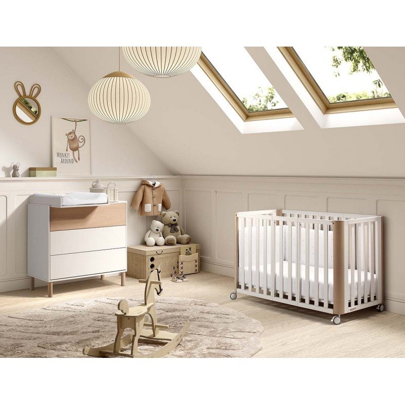 Al ser un producto evolutivo, ayuda a optimizar el espacio en casa y, al mismo tiempo, ofrece una transición progresiva entre etapas. Por ejemplo, en los primeros meses puede favorecer la cercanía propia del colecho, mientras que después permite mantener al peque en una minicuna y, más adelante, pasar a una cuna de 120×60 cm. Finalmente, la transformación a cama Montessori fomenta una mayor autonomía, porque el niño puede acceder a su cama de forma más sencilla. Además, como el lateral se extrae sin herramientas, el cambio de configuración es más cómodo, y por tanto más fácil de integrar en la rutina familiar. En conjunto, es una opción muy completa si buscas un único producto para varias fases, con configuraciones claras según la edad.