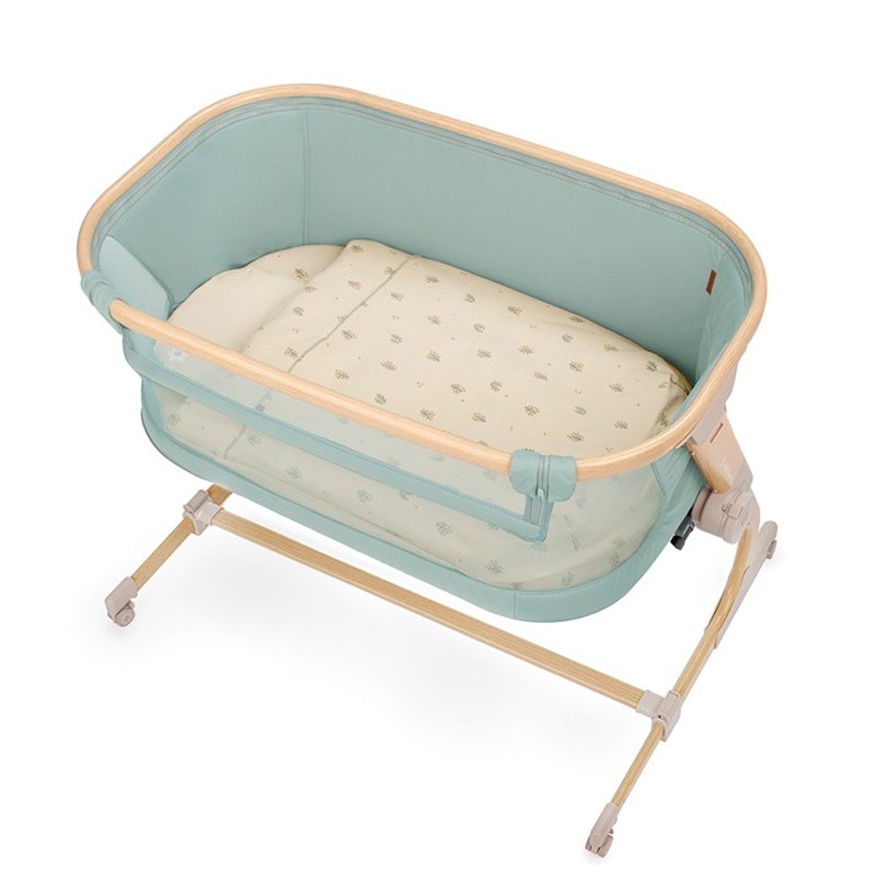 Durante las primeras semanas, la cercanía aporta mucha seguridad a la familia. Con esta minicuna, puedes tener al bebé a tu lado y, al mismo tiempo, mantener su propio espacio de descanso. Asimismo, la regulación en altura ayuda a colocarla a un nivel adecuado para la cama, lo que resulta especialmente útil cuando se busca una postura cómoda al atender al bebé por la noche. Además, las ruedas con freno permiten moverla con suavidad para reorganizar el espacio, pero fijarla con confianza cuando llega el momento de dormir. Por otro lado, las mallas laterales favorecen un entorno más aireado y una supervisión rápida, algo que aporta tranquilidad especialmente en siestas y noches.