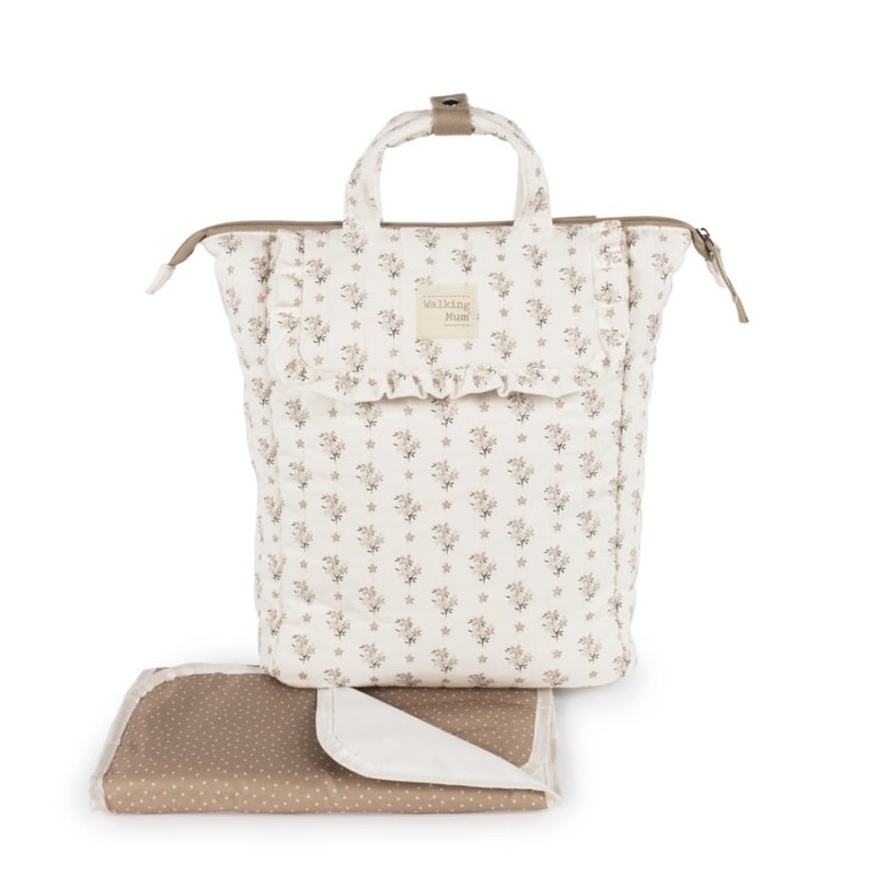 La mochila Walking Mum Botton Flores es una solución práctica para familias que quieren llevar todo lo necesario en cada paseo sin renunciar al orden. Esta mochila combina el formato de bolsa canastilla con la comodidad de una mochila, de modo que puedes distribuir mejor el peso y tener las manos libres cuando lo necesitas. Además, su diseño multifunción resulta ideal para el día a día: es ligera, resistente y con gran capacidad, por lo que acompaña tanto en salidas cortas como en jornadas más largas. Por si fuera poco, incorpora múltiples bolsillos interiores y exteriores para organizar pañales, toallitas, biberones, llaves o el móvil, manteniendo cada cosa a mano cuando más importa.