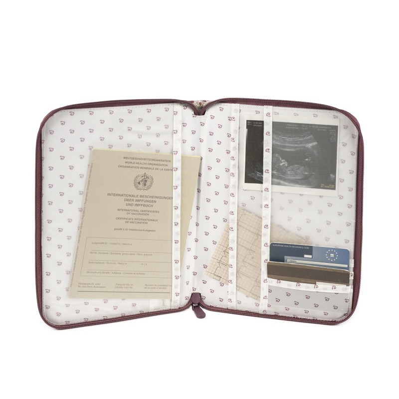 Producto diseñado como complemento para organizar documentación y papeles médicos del bebé. Dispone de bolsillos en ambos lados, interior forrado y cierre de cremallera. Material resistente y suave, con acabados de calidad. Fabricado con materiales libres de colorantes azoicos, ftalatos y sustancias nocivas para la salud. Cuidados: lavable a mano o a máquina hasta 30º.